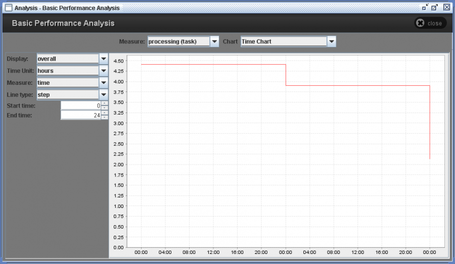 - Display: The overall draws a single chart considering all events in a log. Task, originator, and instance draw several charts for the selected item.