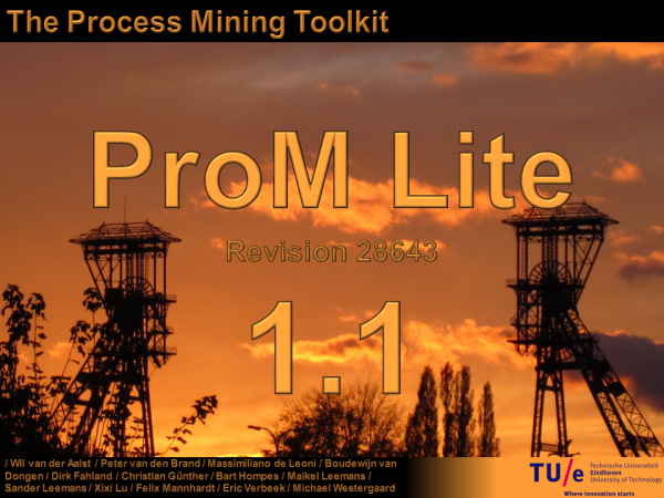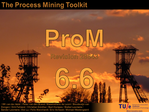 ProM (which is short for Process Mining framework) is an Open Source framework for process mining algorithms. ProM provides a platform to users and developers of the process mining algorithms that is easy to use and easy to extend. Our mission is to become the de facto standard process mining platform in the academic world by establishing an active, recognized community of contributors and users, and to create awareness for the power of process mining technology by promoting applications and industrial uptake. Our vision is to actively advance the state-of-the-art of process mining technology by developing methods that really work, by creating an open community, and by providing a stable and easily extensible platform, which optimally supports process mining.