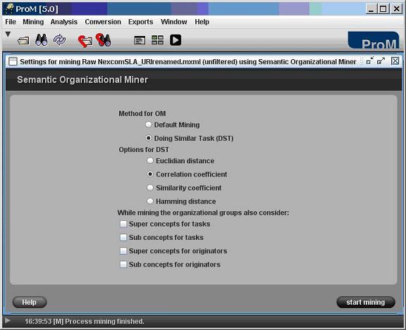 clicking Mining→ LogName→ Semantic Organizational Miner. You